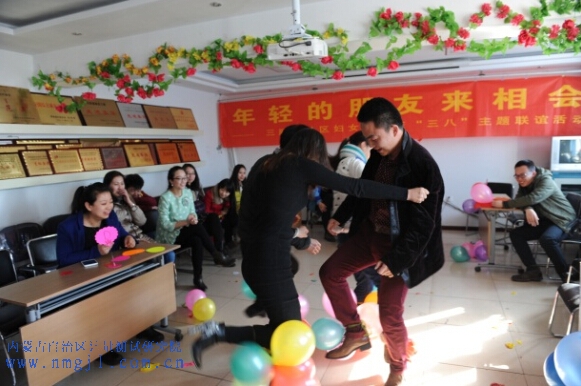 ??? 本次聯誼會結合青年特點,以輕松歡快的形式,為單身青年搭建了溝通交流的平臺。首先是暖身環節“大家齊唱青蛙歌”,讓參加活動的單身男女們情緒高漲起來,大家迅速轉動腦筋,比拼智慧和勇氣,“5只青蛙10條腿”可愛的男嘉賓一緊張報錯了數量,惹得在場觀眾捧腹大笑。隨著相親會氣氛逐漸高漲,單身男女青年們不再羞澀,踴躍參加互動活動,展示自己的風采,在接下來的“一個比劃一個猜”環節,大家抽簽分組比拼默契程度,男生手舞足蹈,女生機智聰慧,歡聲笑語中拉近了彼此距離。最后環節是“踩氣球”,大家都漸入佳境,躍躍欲試,男女搭配、你攻我防,讓參與活動的年輕朋友樂在其中,并對自己的心儀對象有了更多的了解。活動結束時,主持人給大家提供機會進行“愛的表白”,單身青年們相互交換了聯系方式。此次聯誼,整場活動都洋溢著歡樂的氣氛,活動取得了很好的效果。