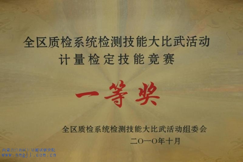 全區質檢系統檢測技能大比武活動計量檢定技能競賽一等獎(二O一O年十月)