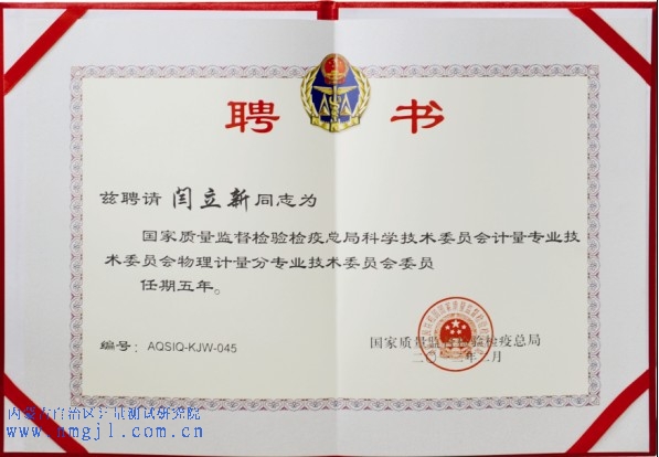 ??? 我院總工程師被聘任為專業(yè)技術委員會委員,是內蒙古計量科研工作發(fā)展的一件大事。