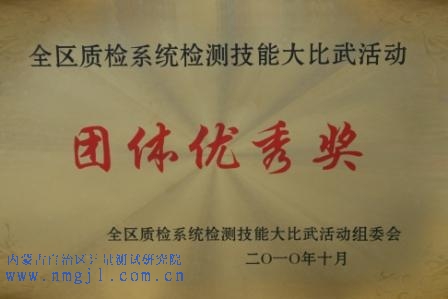 全區質檢系統檢測技能大比武活動團體優秀獎(二O一O年十月)