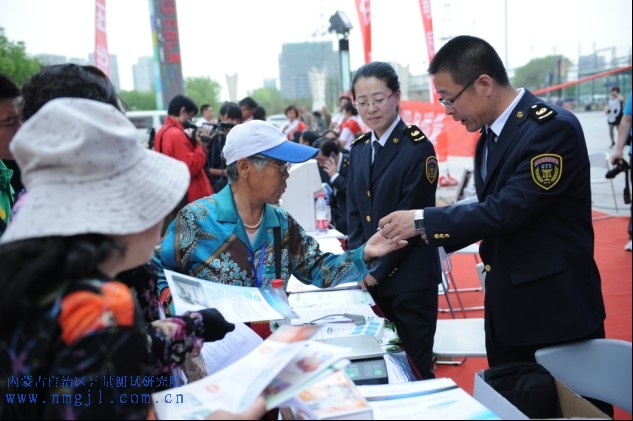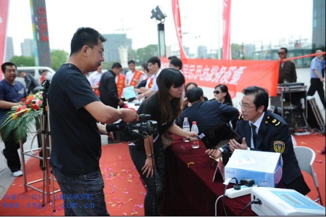 ??? 在廣場熙熙攘攘的人流中,身著質(zhì)監(jiān)制服的計量院服務(wù)人員以精準的技術(shù)、優(yōu)質(zhì)的服務(wù)態(tài)度受到廣大市民一致好評。講解人員從宏觀的科學(xué)計量、能源計量到社會關(guān)注、百姓關(guān)心的涉及醫(yī)療、民用四表(水、電、氣、熱四表)、加油機、商品量等民生計量知識進行了現(xiàn)場解答,國衡中心主任狄玉峰就太陽膜相關(guān)知識進行了講解和現(xiàn)場演示,并接受了內(nèi)蒙古電視臺的采訪;醫(yī)療與光學(xué)計量所門小冬就消費者投訴比較多的眼鏡接受了內(nèi)蒙古晨報的采訪;流量計量所王學(xué)軍就百姓比較關(guān)心的“民用四表”接受了內(nèi)蒙古日報的采訪;業(yè)務(wù)拓展部李彧為消費者現(xiàn)場發(fā)放了標值為100克的便攜砝碼,精致的砝碼上還印有12365投訴電話,消費者在購買物品時不僅可以通過砝碼檢測小型衡器的準確性,如發(fā)現(xiàn)計量器具不準確還可以電話投訴。