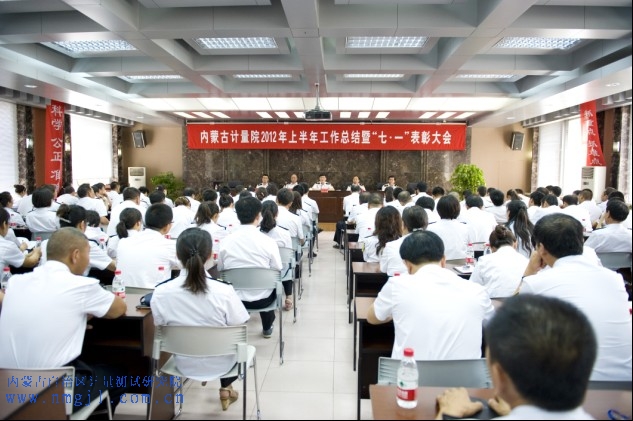 ??? 7月8日,內蒙古計量院隆重召開2012年上半年工作總結暨創先爭優活動表彰大會,院長、黨委書記呂金華,副院長、黨委委員楊明、阿迪呼、劉峰和總工程師閆立新出席了會議。會議由楊明副院長主持,全體員工參加了會議。