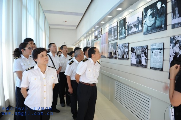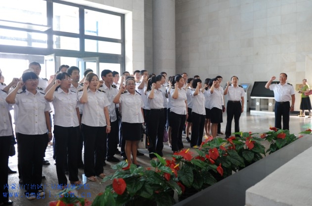 ??? 在講解員的帶領下,全體黨員干部參觀了序廳和《追求真理投身革命》、《播灑火種再展紅旗》等9個展廳,通過陳列的大量文物、文獻和照片,集體回顧了烏蘭夫同志波瀾壯闊的一生和內蒙古老一代領導群體的豐功偉績。真實地再現了烏蘭夫同志投身抗日救國運動,加強民族團結的豐功偉績。全體黨員干部一邊參觀一邊暢談感想、交流體會,受到了深刻的思想教育。參觀結束后,在烏蘭夫塑像前,全體黨員干部再一次面對鮮紅的黨旗鄭重地舉起拳頭許下諾言,重溫入黨誓言。?